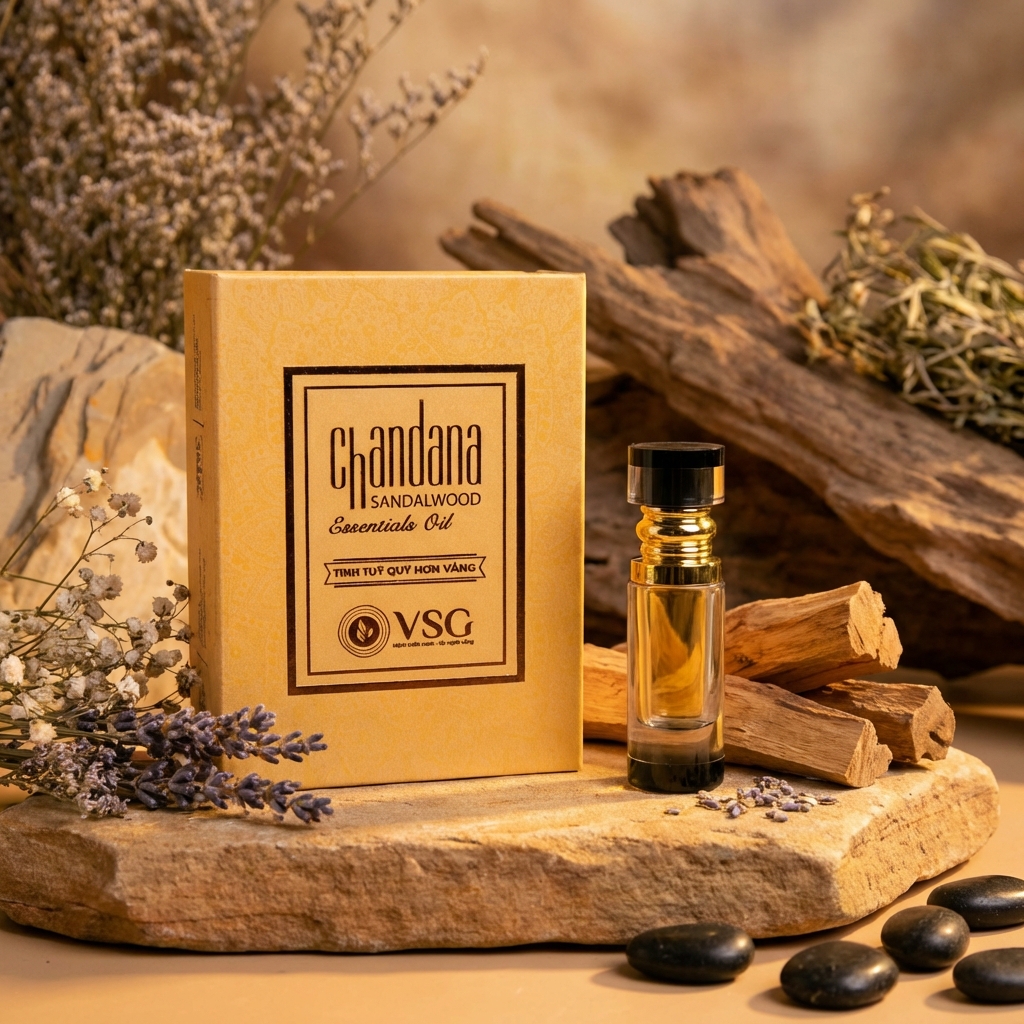 Tinh dầu Đàn Hương nguyên chất với hương trầm ấm sâu lắng, giúp thư giãn tinh thần, cân bằng cảm xúc và tái tạo năng lượng. Sản phẩm thể hiện rõ giá trị cốt lõi của VSG trong định hướng bảo tồn và phát triển Đàn Hương tại Việt Nam một cách bền vững.