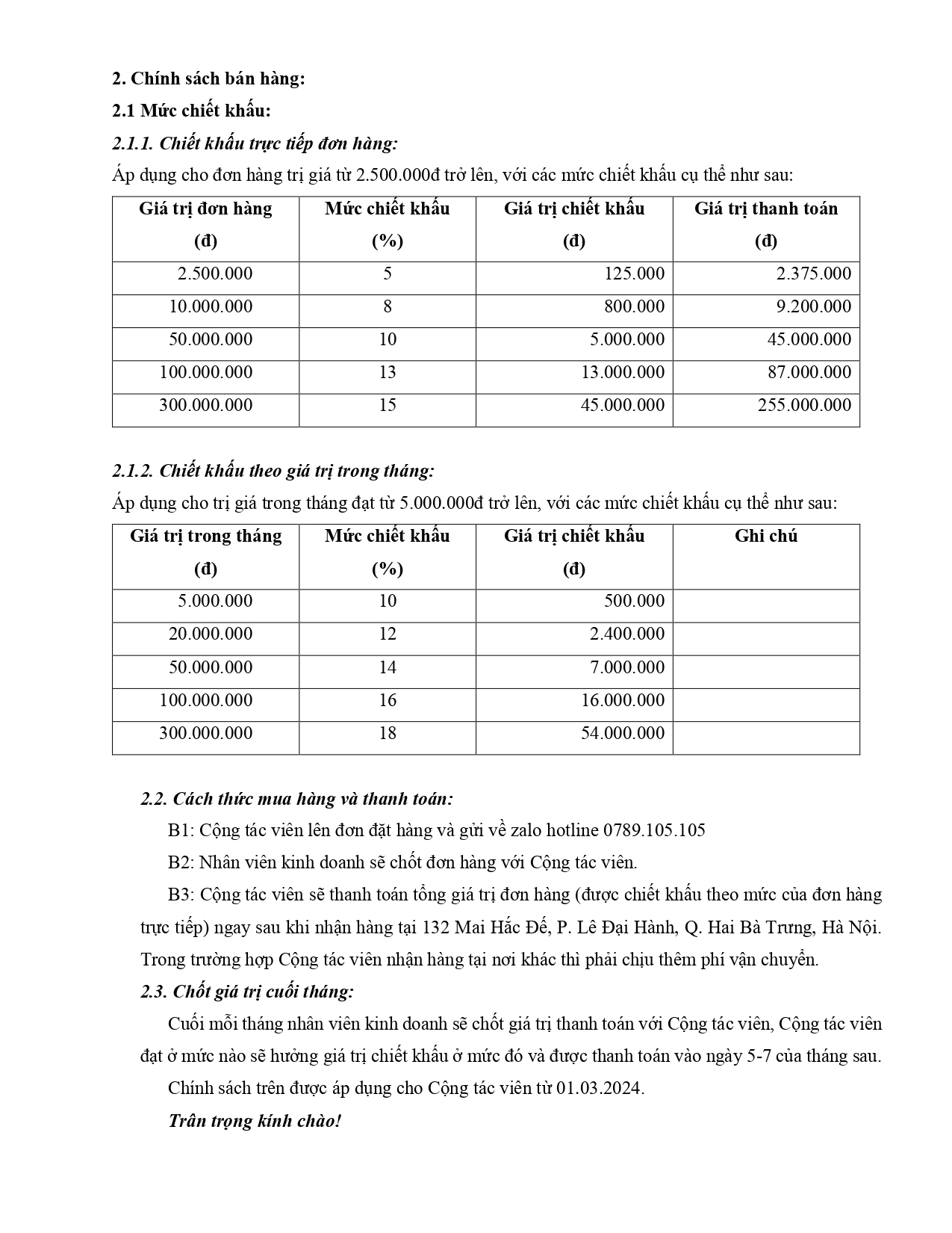 Chính Sách Bán Hàng Dành Cho Đại Lý Năm 2024