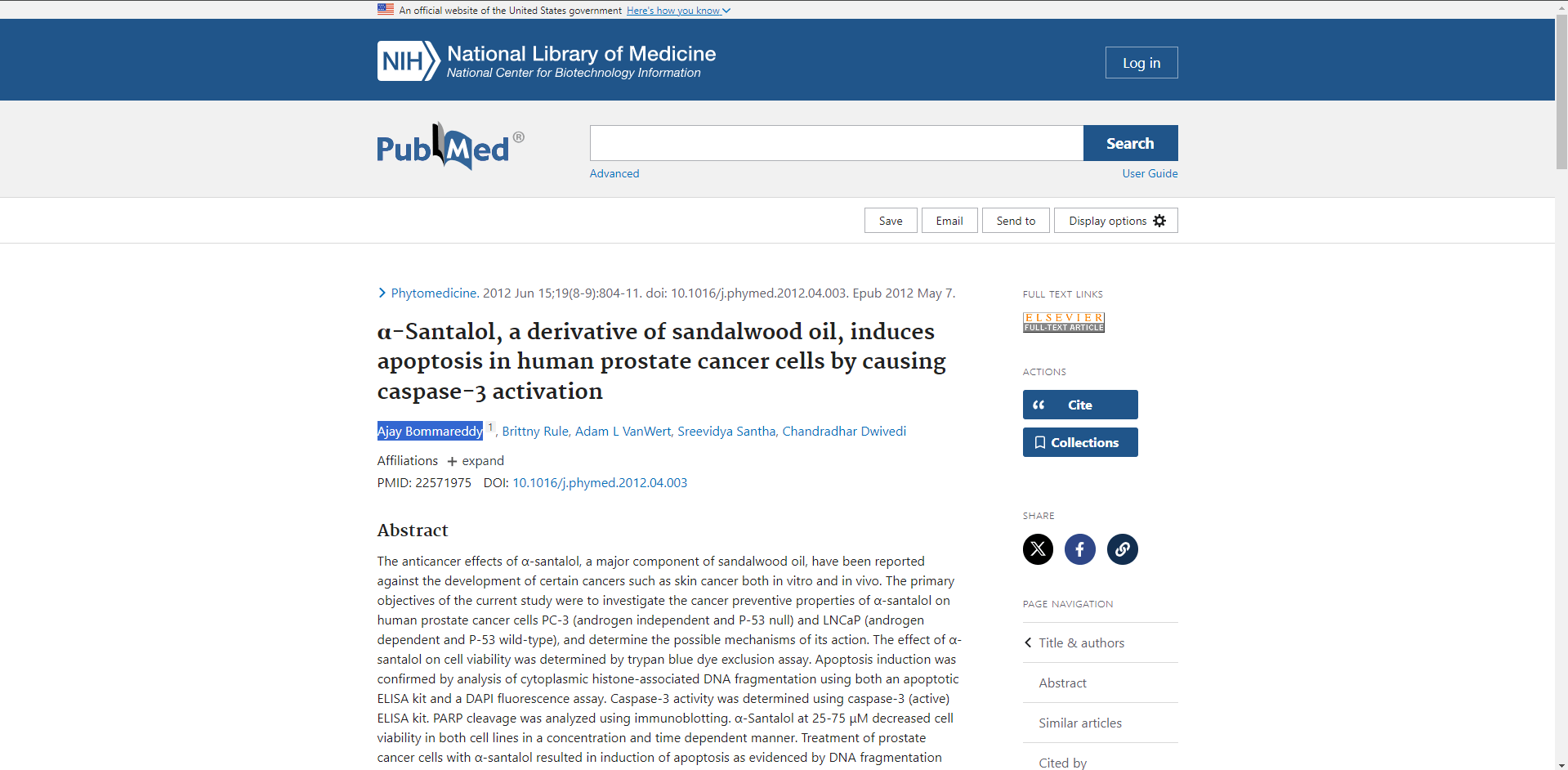 - Tác động của α-santalol đối với khả năng sống sót của tế bào ung thư được đánh giá thông qua xét nghiệm loại trừ (sử dụng thuốc nhuộm xanh trypan). Sự kích thích apoptosis được xác nhận thông qua phân tích sự phân mảnh DNA liên quan đến histone tế bào bằng cách sử dụng cả bộ ELISA apoptotic và xét nghiệm huỳnh quang DAPI. Ngoài ra, hoạt động của caspase-3 đã được định lượng thông qua bộ ELISA caspase-3 (hoạt động). Cuối cùng, sự phân mảnh PARP sẽ được phân tích bằng phương pháp miễn dịch.