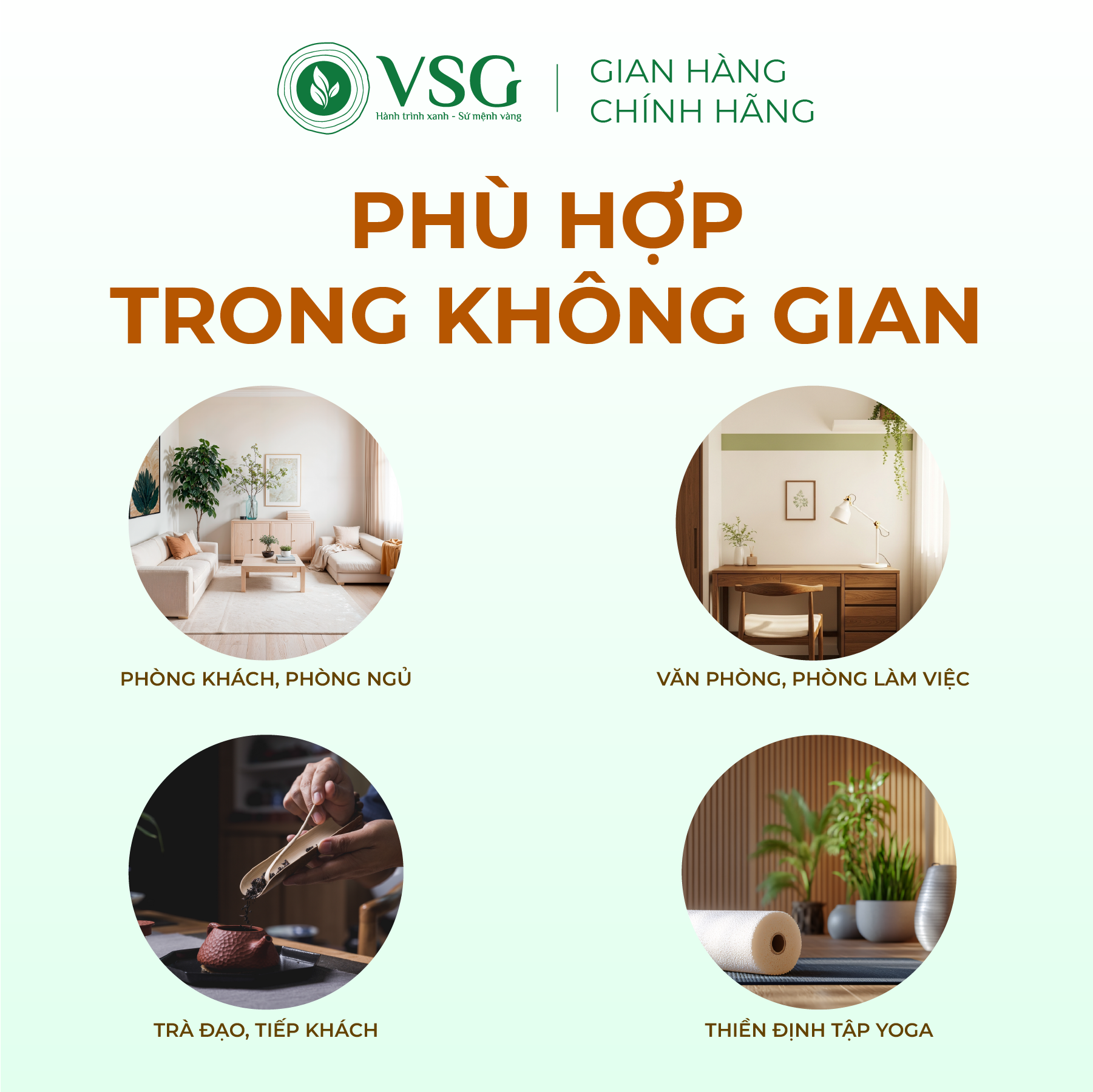 👉 Làm dịu tinh thần, giảm stress, đẩy lùi nhanh chóng trạng thái căng thẳng, mệt mỏi, đặc biệt phù hợp dùng để đốt trong những dịp thưởng trà, đối ẩm cùng gia đình, bằng hữu,…