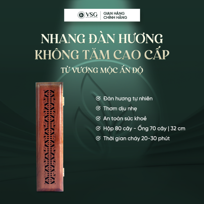 Nhang Đàn hương không tăm có thể kết hợp với nhiều loại dụng cụ thưởng hương khác nhau. Có thể sử dụng khay hộp thưởng hương sang trọng của VSG dành riêng cho nhang Đàn hương không tăm, giúp lan tỏa hương thơm tự nhiên và tạo không gian thư giãn lý tưởng. Sau đây là các bước để thưởng thức trọn vẹn sự tinh tế tao nhã của Đàn hương: