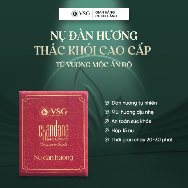 Nụ Đàn Hương cao cấp là sản phẩm được sản xuất từ bột gỗ Đàn hương trắng Ấn Độ nguyên chất, chất kết dính tự nhiên từ keo bời lời và không sử dụng bất kỳ hóa chất nào khác. Do đó nhang nụ Đàn hương cao cấp có mùi hương dịu nhẹ dễ chịu, không hắc nồng và gây hại sức khỏe như các loại nhang thông thường khác.