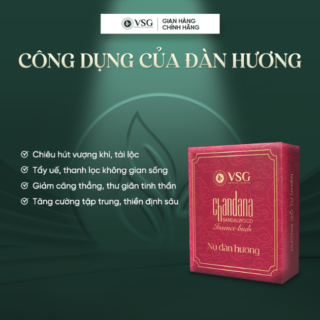 Nụ Đàn hương không chỉ đem lại nhiều lợi ích tuyệt vời cho sức khỏe mà còn mang giá trị phong thủy sâu sắc. Với hương thơm ấm áp, nụ Đàn hương tạo không gian thư giãn, thoải mái, đồng thời mang đến sự ấm cúng và bình yên cho ngôi nhà. Ngoài ra, hương thơm nụ Đàn hương giúp:
