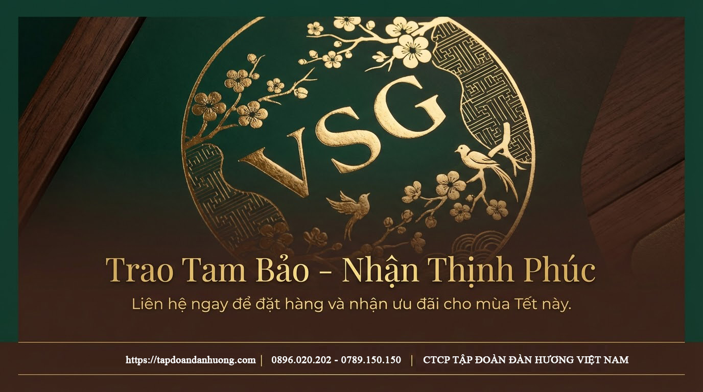 Tết Nguyên đán là dịp khởi đầu cho những giá trị mới, đồng thời là thời điểm ý nghĩa để gửi gắm lời chúc an lành, thịnh vượng đến đối tác, khách hàng và những người thân yêu. Với triết lý tôn vinh giá trị tự nhiên và tinh hoa đàn hương Việt, Tập đoàn Đàn hương Việt Nam (VSG) trân trọng giới thiệu Set Quà Tết Tam Bảo Thịnh Phúc – giải pháp quà biếu trang trọng, tinh tế và giàu ý nghĩa cho mùa xuân mới.